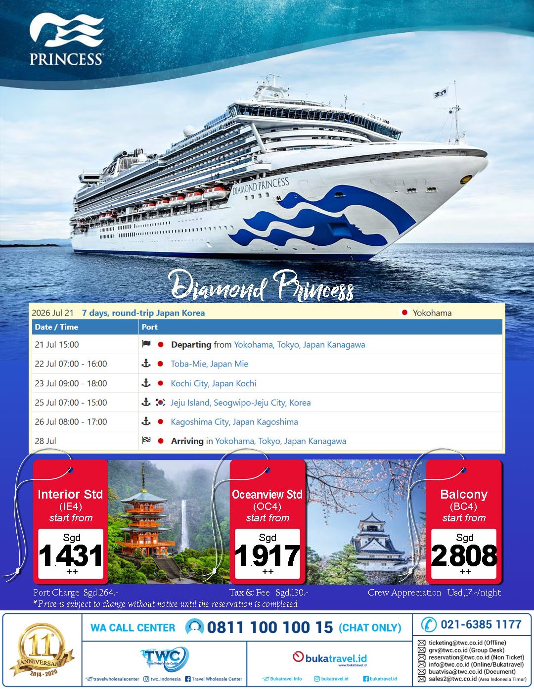 DIAMOND PRINCESS ~ 8D7N JAPAN – KOREA ROUND TRIP