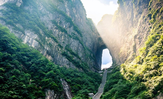 Setelah sarapan, Anda akan diajak menuju Wulong Tiankeng Three Bridges Site (termasuk battery car),  yang terletak  di Wulong Houping. Tempat ini terkenal dengan tiga jembatan batu lengkung yang natural, diberikan nama: Tianlong (Sky Dragon) Bridge, Qinglong (Green Dragon) Bridge Dan Heilong (Black Dragon) Bridge. Setelah itu Anda diajak  mengunjungi Fairy Mountain (termasuk kereta), yang berlokasi di bagian utara dari Sungai Wujiang di Wulong district. Area ini termasuk dalam pegunungan Wuling, dengan ketinggian 2.033m dari permukaan laut, dan hutan seluas 330.000 are dan 100.000 are padang rumput alami. Dikenal juga dengan sebutan “The First Pasture in the South” and “Oriental Switzerland”. Di sana terdapat juga Wave Road, jalan berkelok-kelok yang mirip ombak ini menjadi jalan raya yang terkenal di social media.
